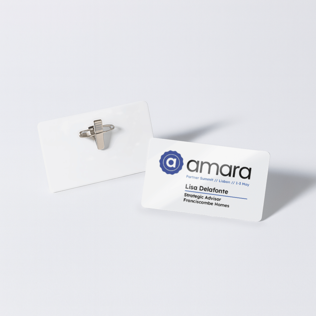 As the name suggests, this process is ideal for printing a logo or other graphics alongside the attendee details. The print goes near to the edge but a small margin remains.