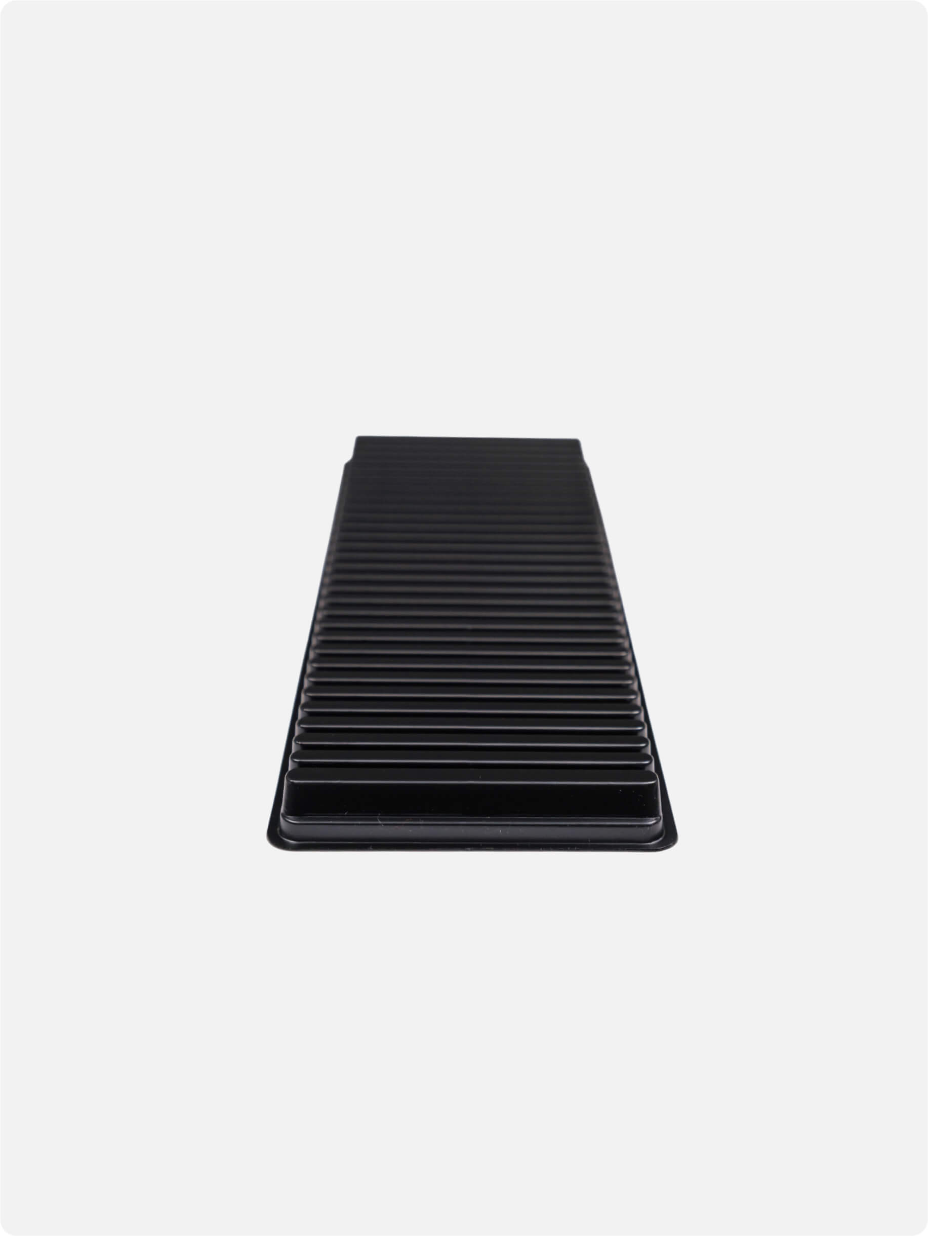 * To maximise display clarity and allow space for clips, we recommend double-spacing badges (15 per tray), though full capacity accommodates 30 badges per tray. Each pack contains 10 trays, which can store up to 300 badges (single-spaced) or 150 badges (double-spaced).Â